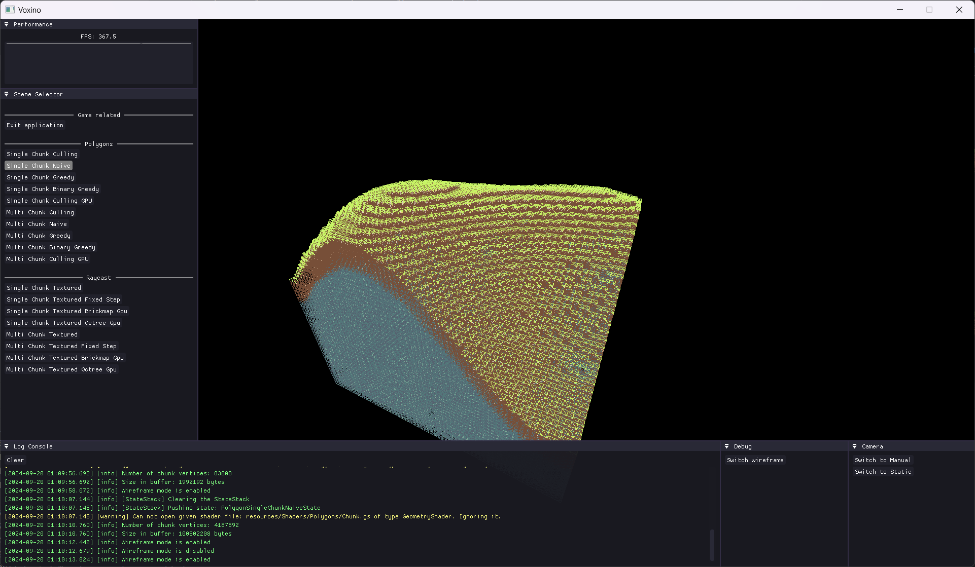 This repository was created solely for the purpose of my Master's thesis titled "Techniques for Optimizing Voxel-Based Representation of the Game World", and it was used during the research phase. The repository has been archived and is no longer open for review or further development. However, I encourage you to read my thesis for detailed insights into the research, methods, and results derived from this testing environment.